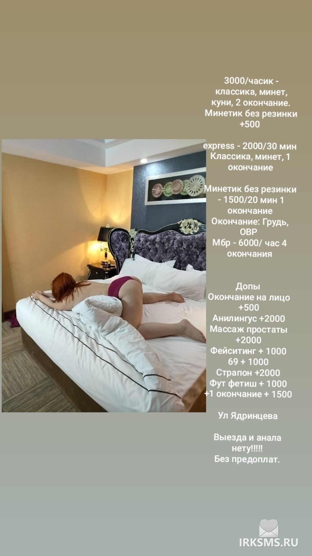 правильно зашли в раздел - здесь база всех самых доступных индивидуалок Иркутска.