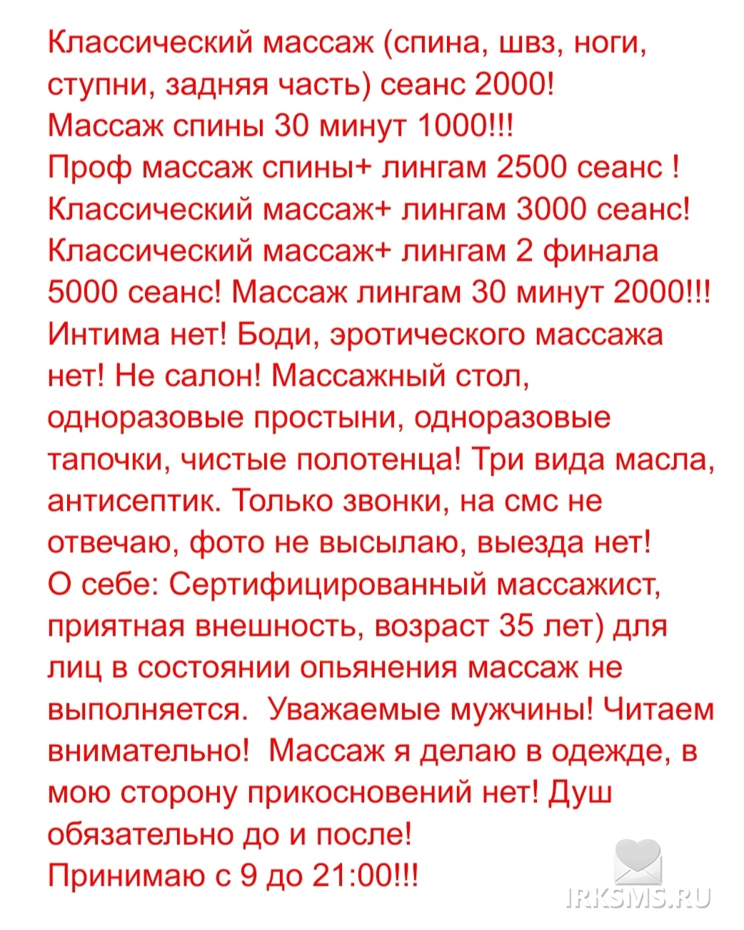 Смс знакомства в Иркутске → Услуги массажа, лингама