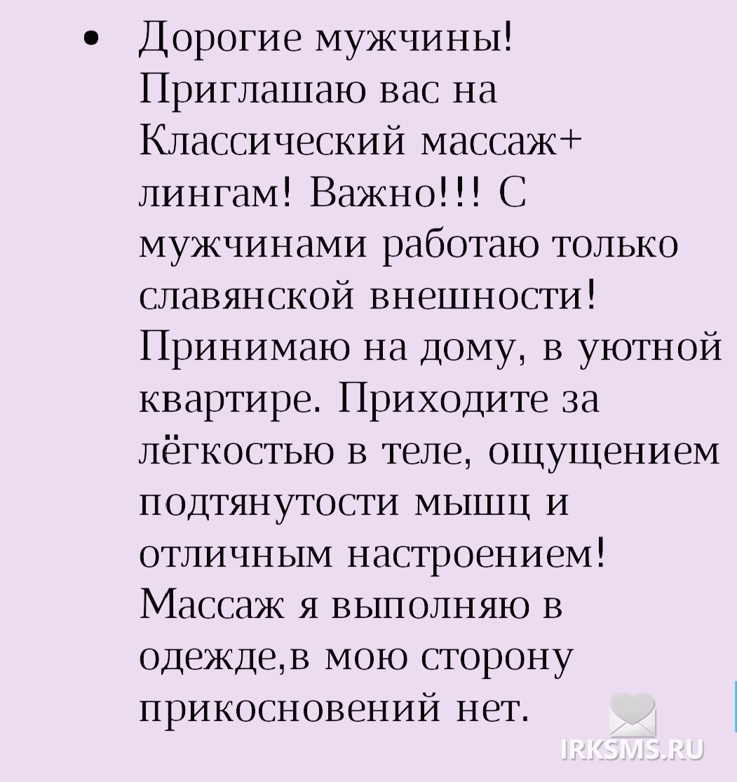 Смс знакомства в Иркутске → Услуги массажа, лингама